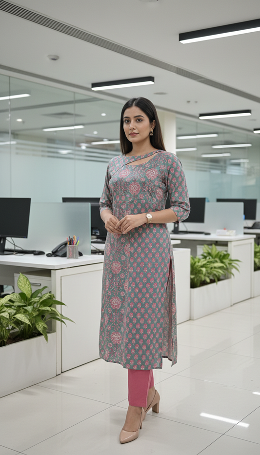 Floral Pure Cotton Panel Kurti with Cutout Neck Details