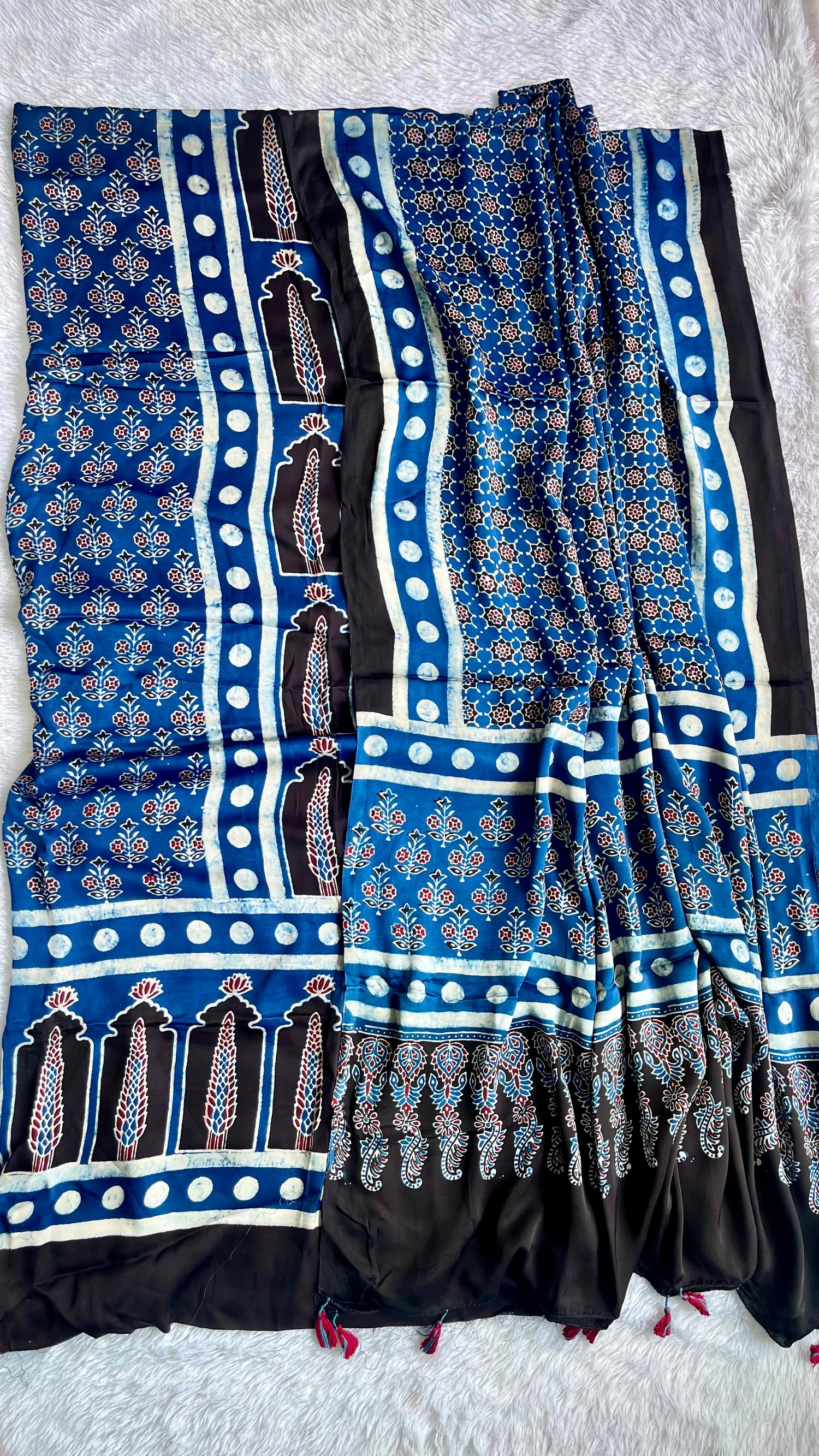 Ajrakh Hand Block Print Mashru Silk Stole made using heritage weaving techniques...