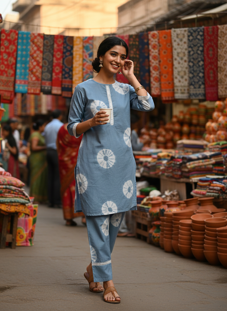 Ash Grey Tie and Dye Print Cotton Co Ord Set