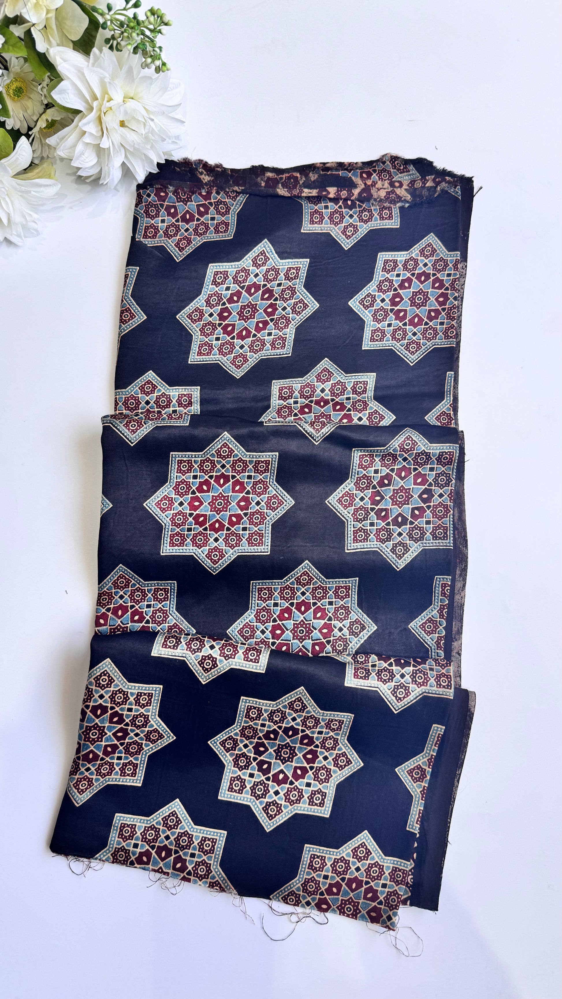 Blue Base Star Flower Print Mashru Silk Blouse Piece