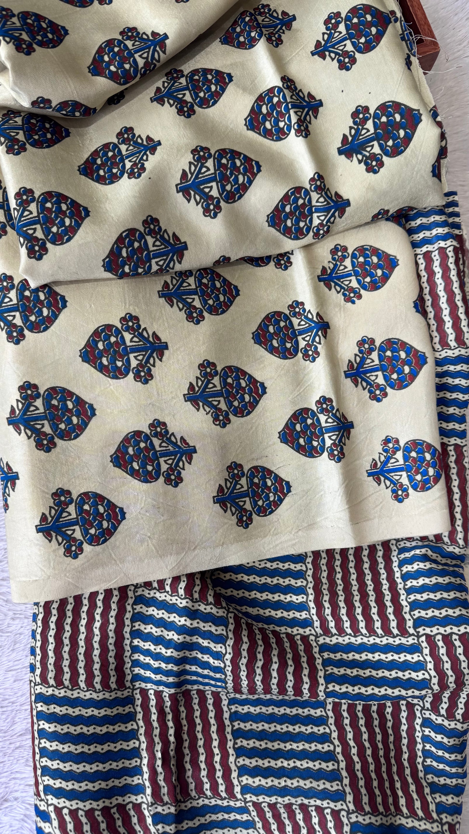 Offwhite Floral Buta Motif Ajrakh Mashru Silk Kurta Pant Fabric