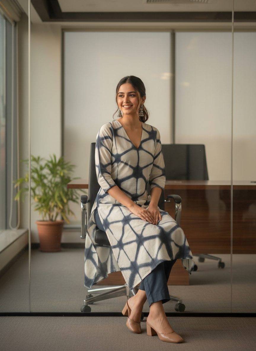 Perfect for both everyday wear and relaxed occasions, this clamp dyed fabric blends traditional craft with modern styling freedom, allowing you to create a look that is truly your own.