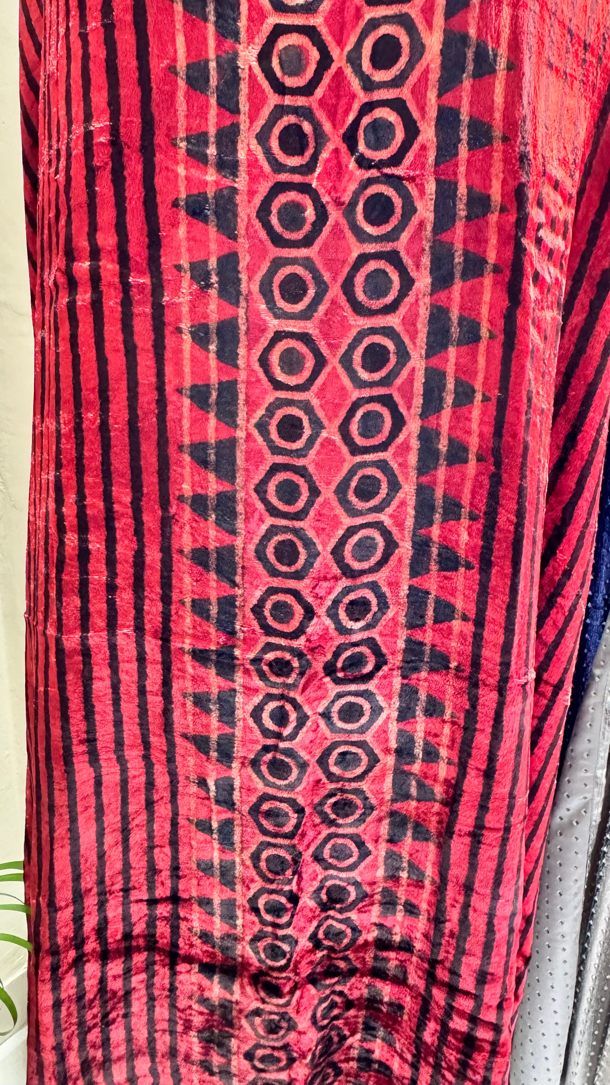 Red Dhari Buta Velvet Fabric Ajrakh Hand Block Print Designer Unstitched Fabric (Kurta Only)