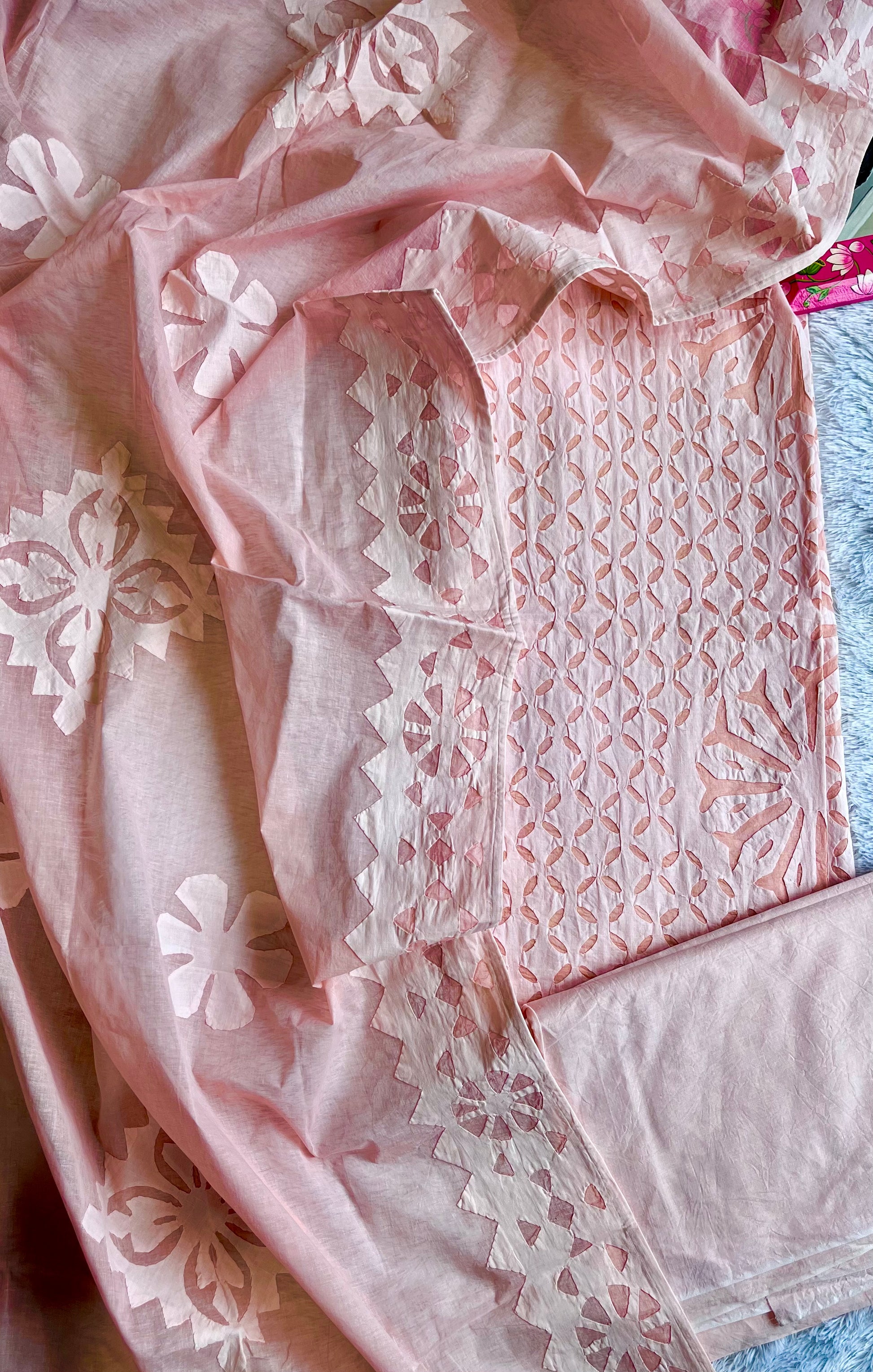Tropical Peach Shade Barmer Applique Cut Work Cotton 3pc Suit Material Set