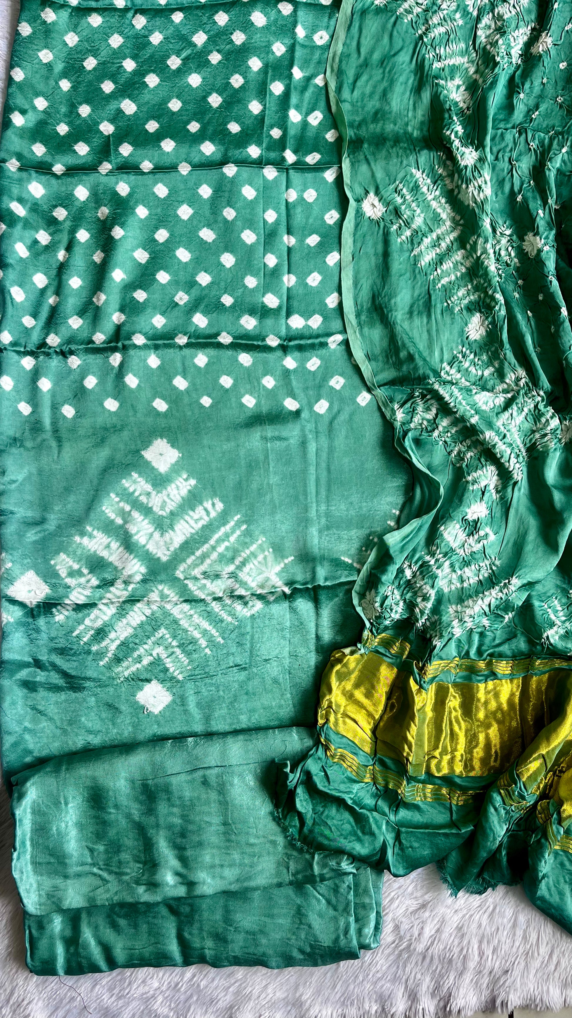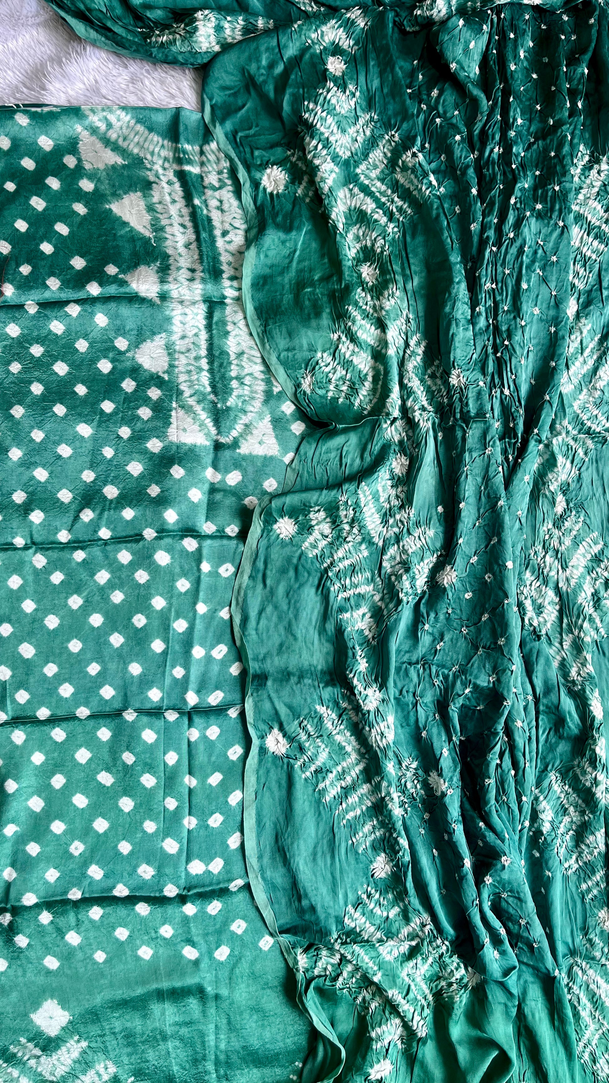 Sea Green Bandhej Semi Modal Silk 3 pc Suit Set with Lagdi Patti Dupatta