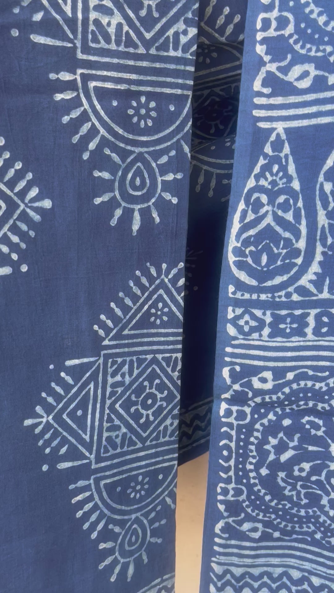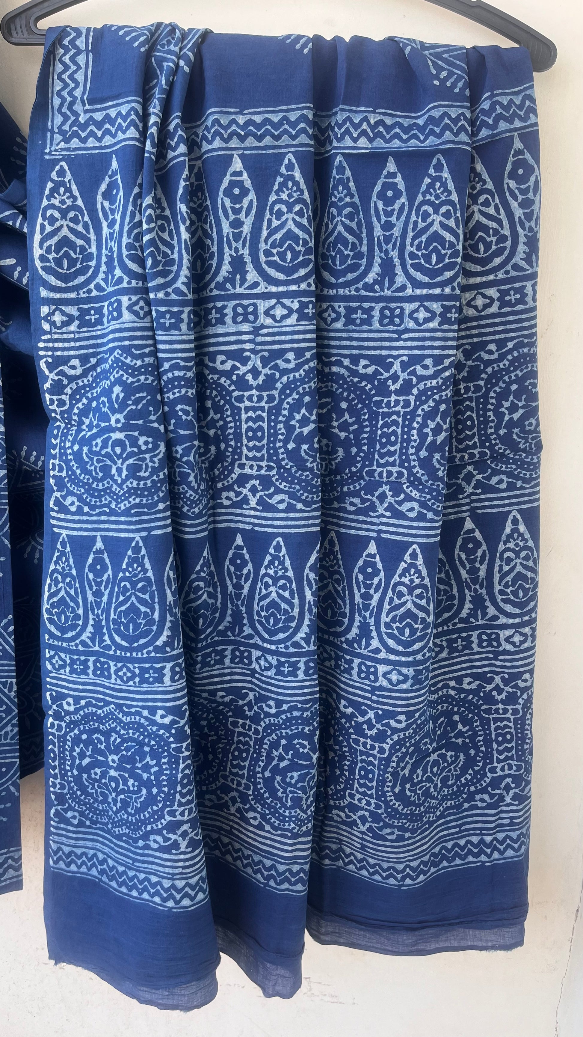 Kasturi Indigo Akola Hand Block Mulmul Cotton Saree with Blouse