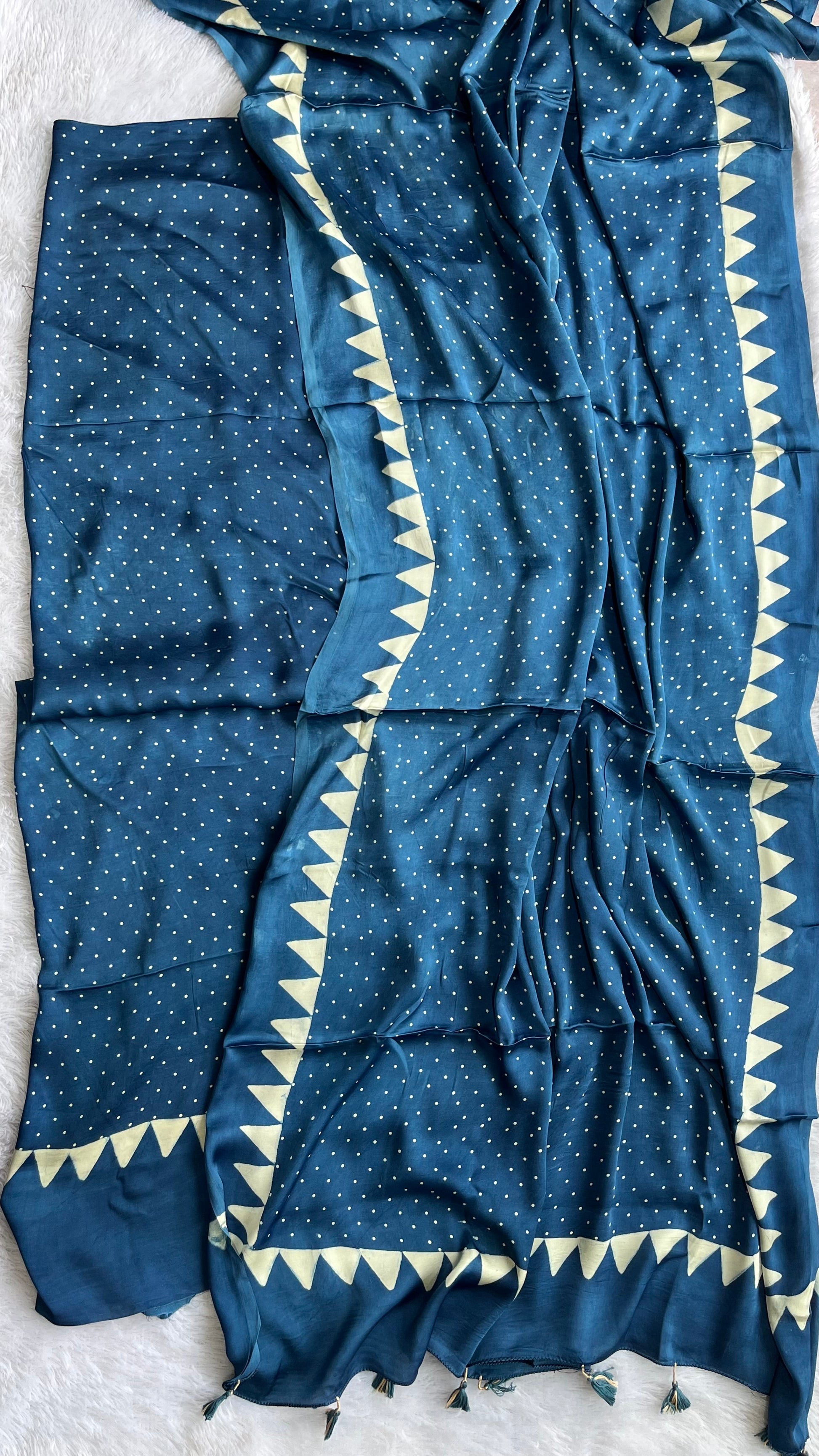 Indigo Polka Dotted Buti Modal Silk 2pc Suit Material Set with Modal Silk Dupatta