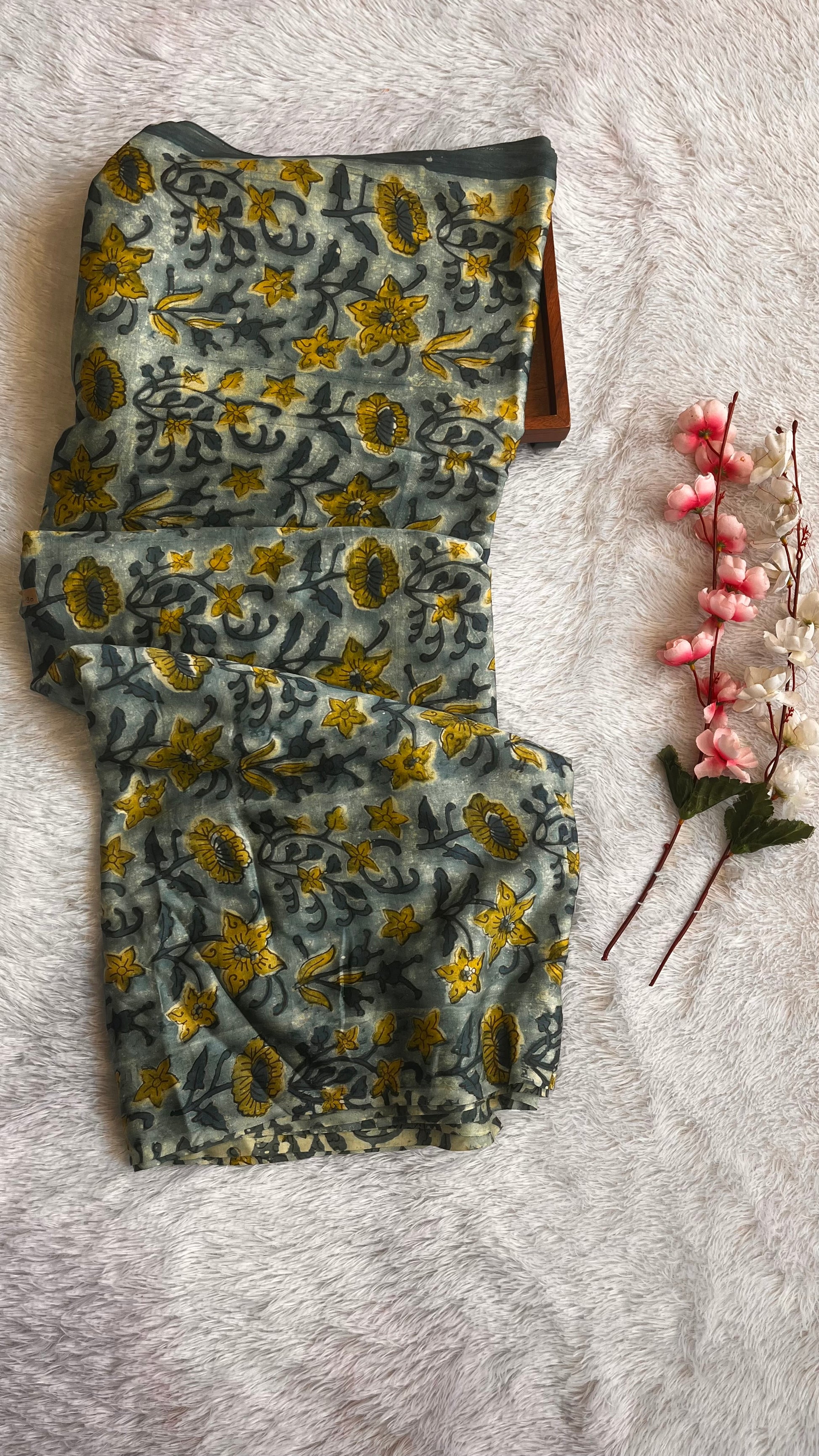 Steel Blue Shade Floral Motif Pure Modal Silk Fabric