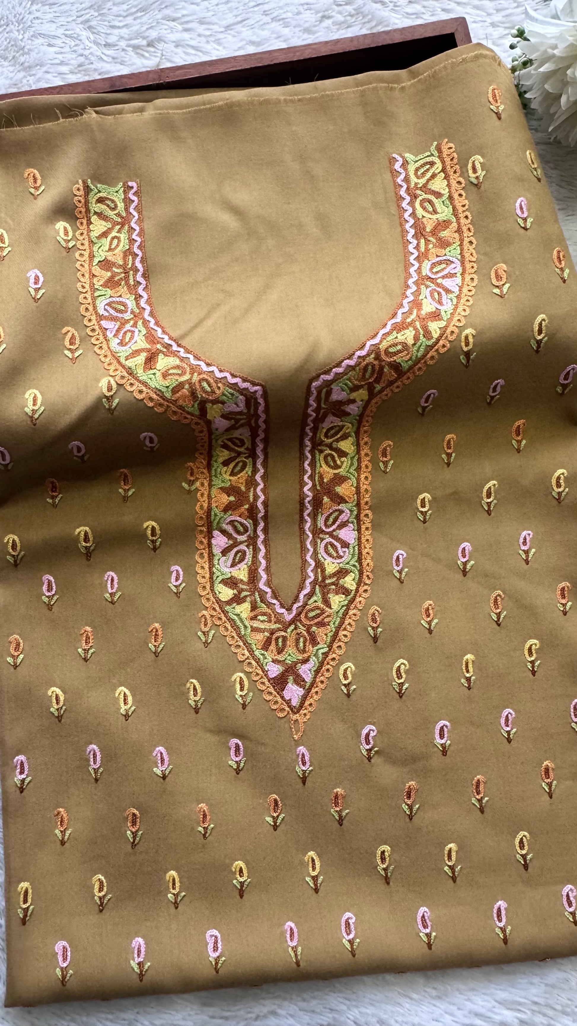 Biscuit Shade with Multicoloured Thread work Pure Cotton Kashmiri Aari Embroidered Co Ord 2 pc Set