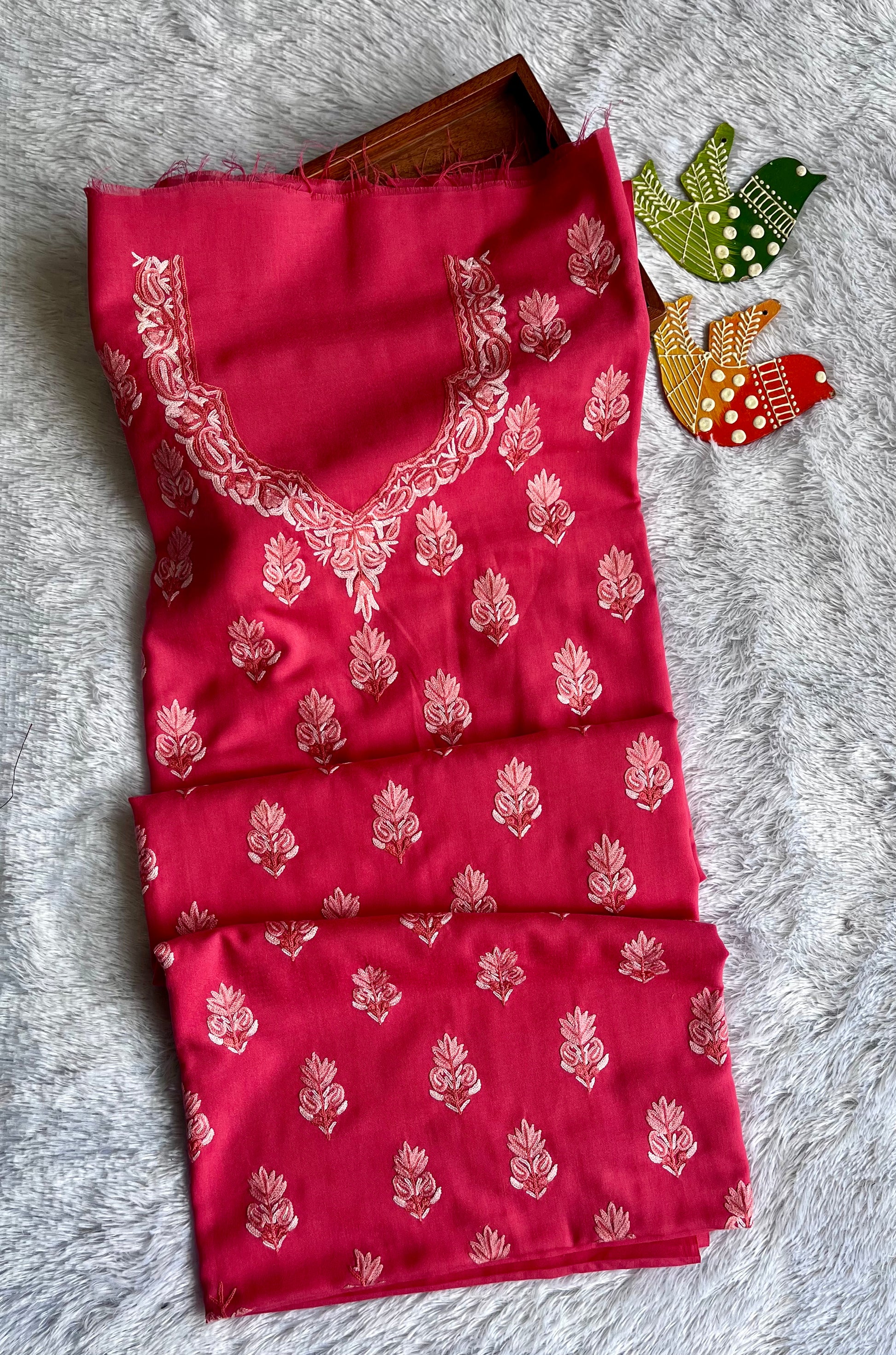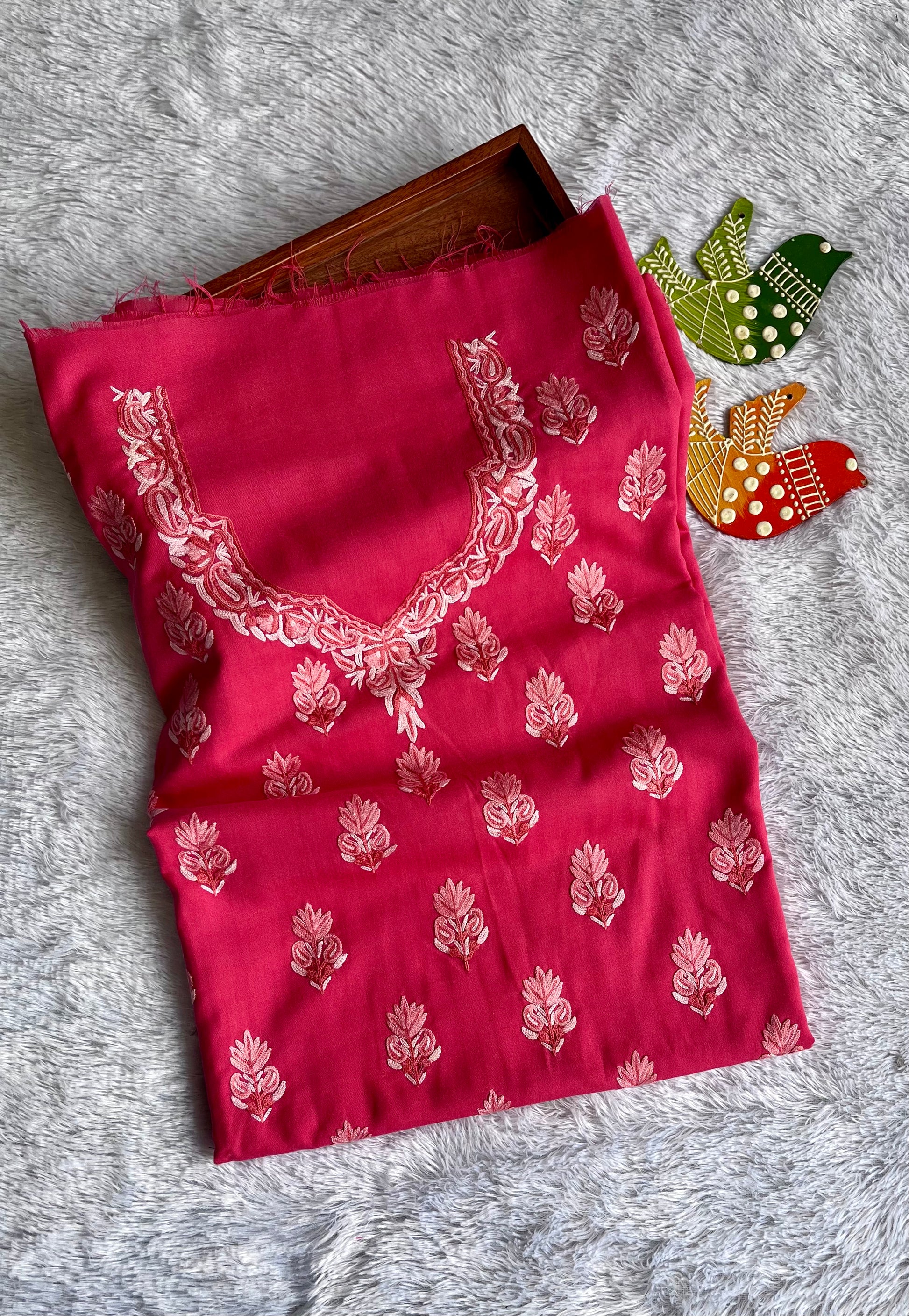 Bubblegum Pink with Matching Thread work Pure Cotton Kashmiri Aari Embroidered Co Ord 2 pc Set