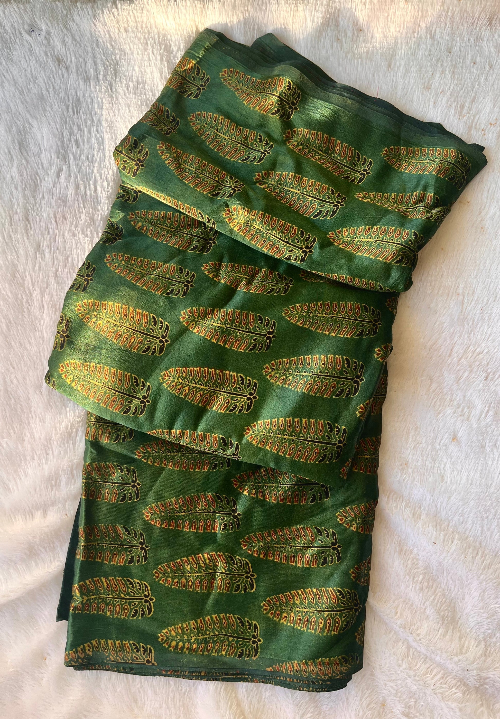 Green Asopallav Motif Ajrakh Mashru Silk Blouse Piece