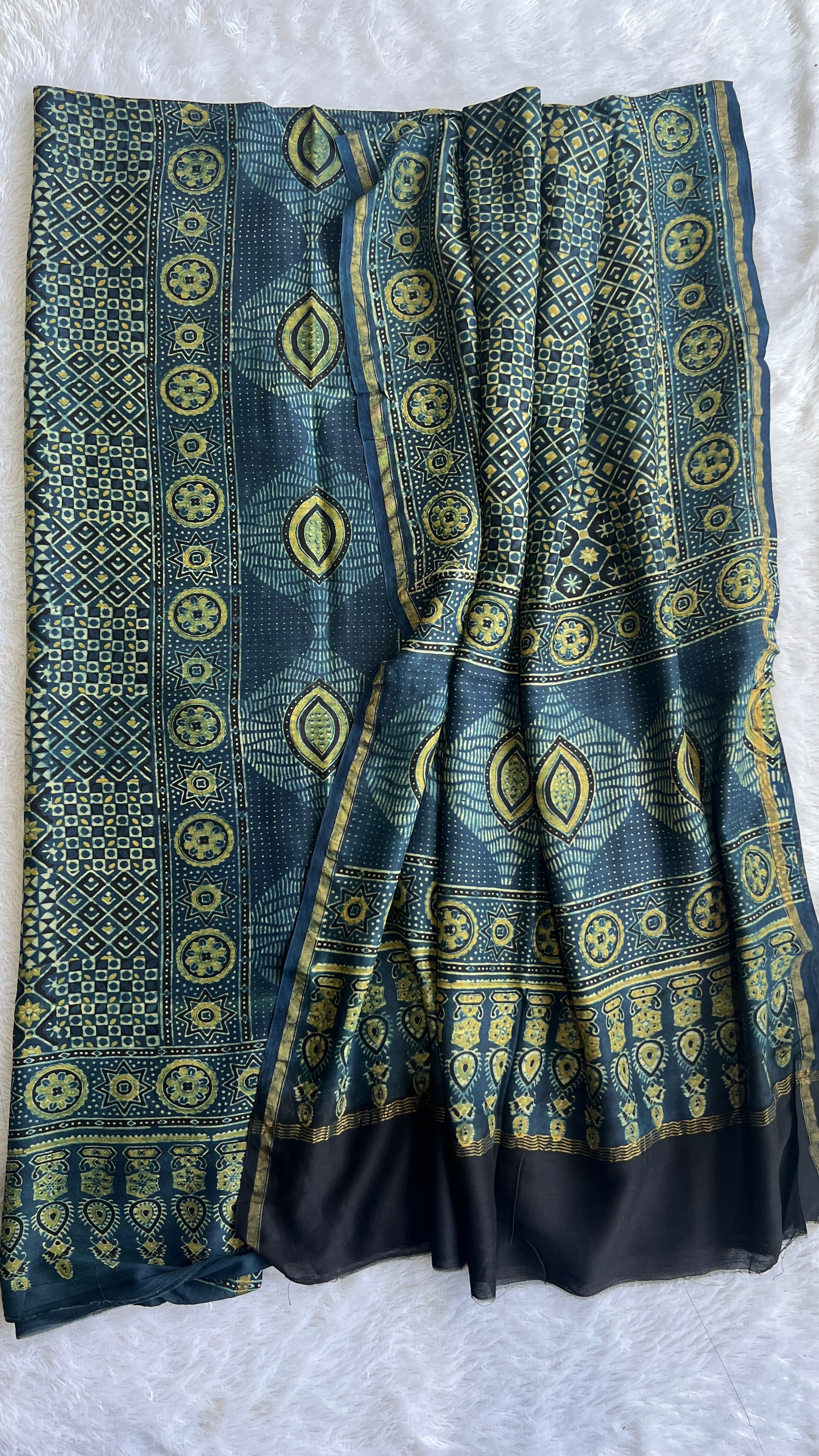 Indigo Intricate Boota Chanderi Silk Cotton Ajrakh hand Block 2pc Suit Set
