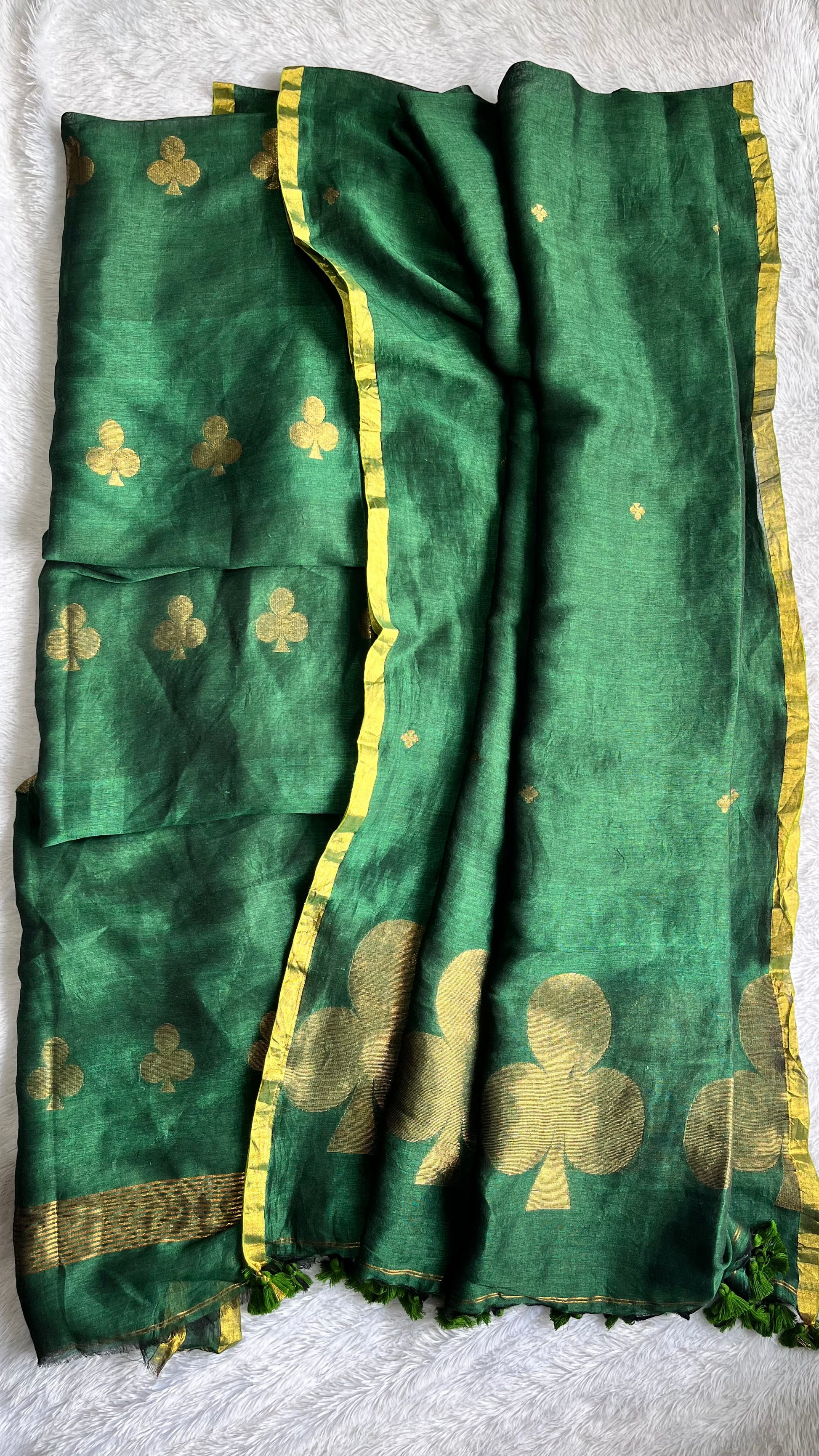 Forest Green Paan Buta Pure Jayshree Linen with Jamdani Hand Woven Daman 2 pc Suit Set