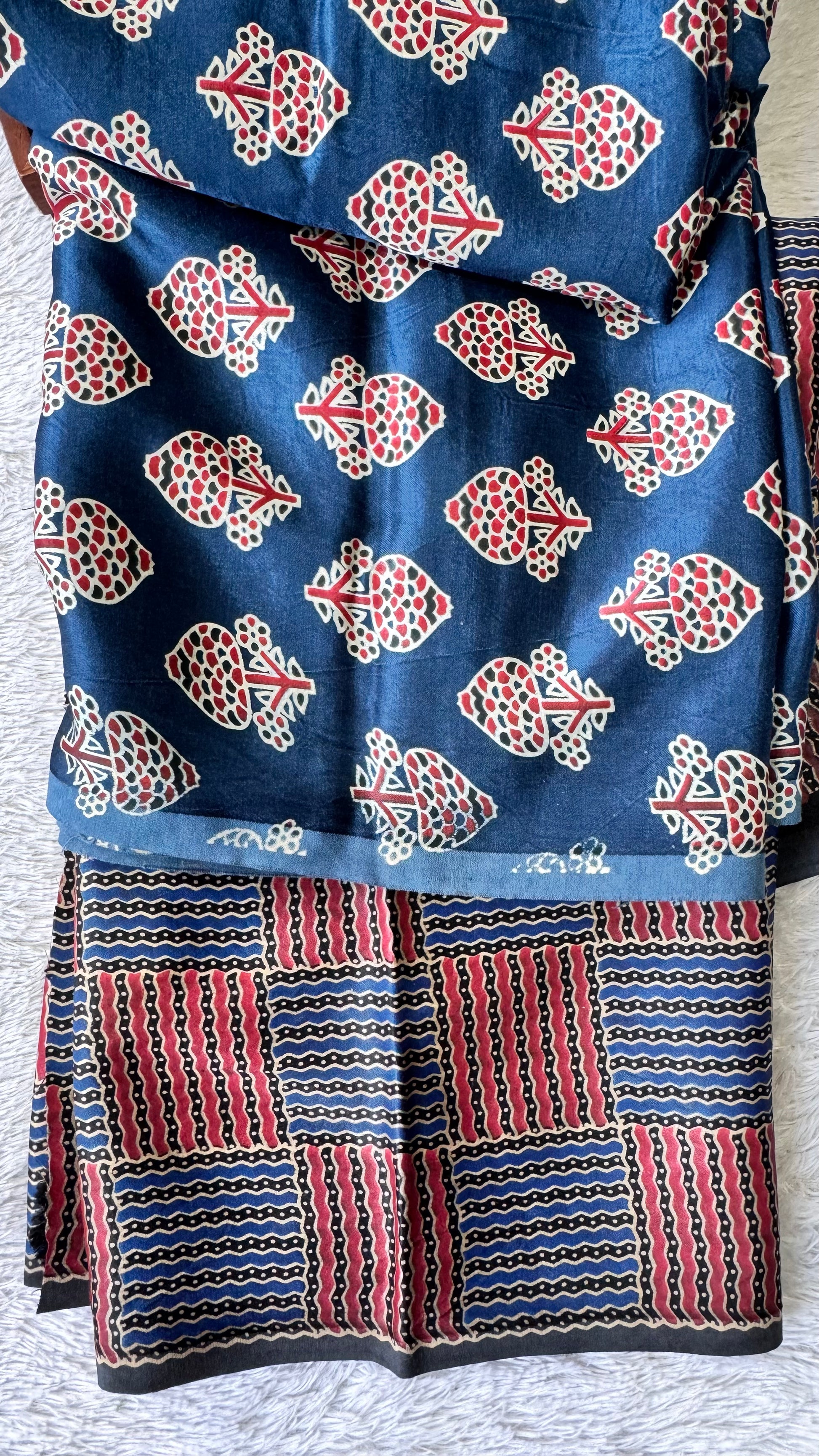 Blue Floral Buta Motif Ajrakh Mashru Silk Kurta Pant Fabric