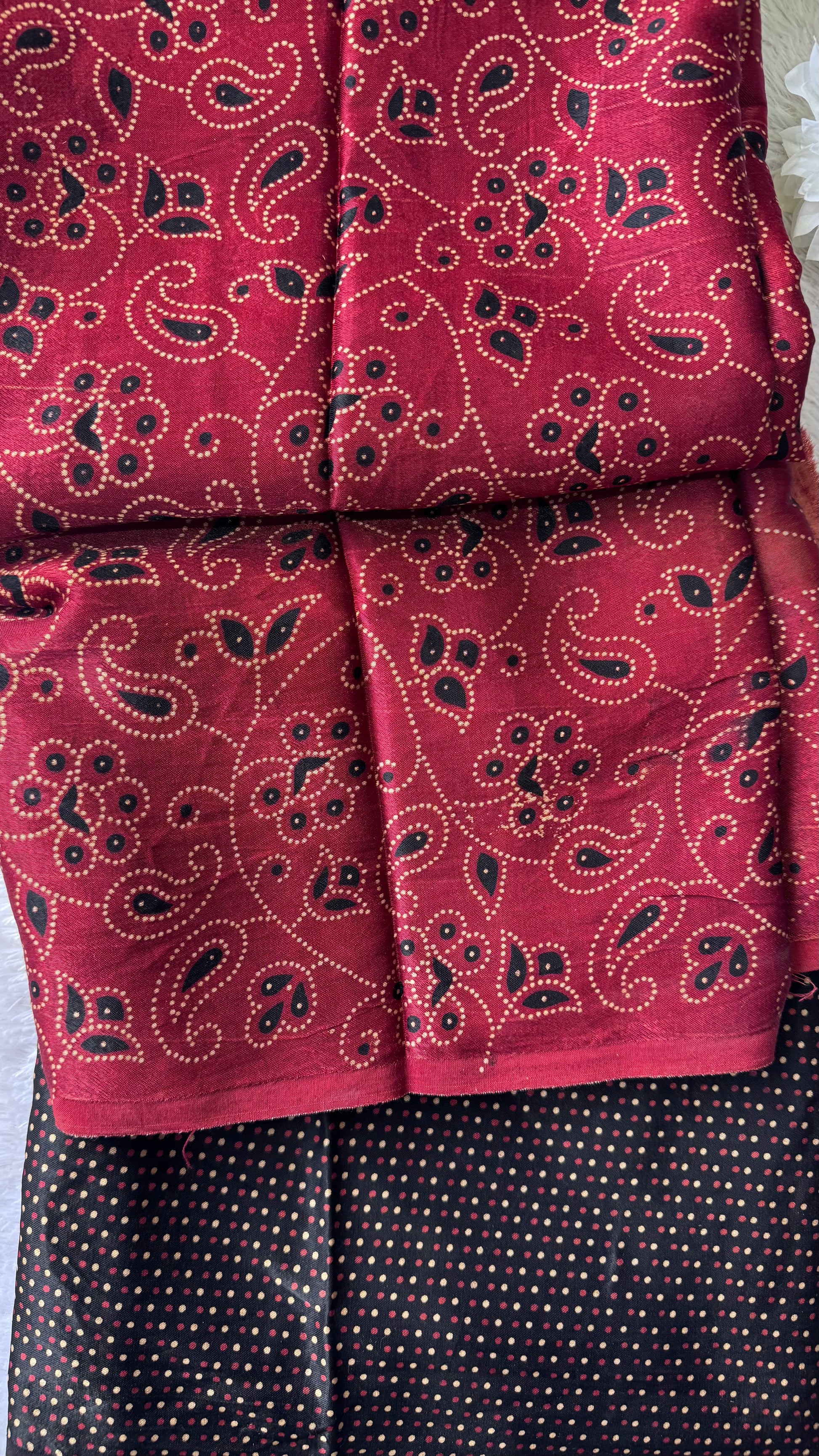 Maddar Red and Black Floral Motif Ajrakh Mashru Silk Kurta Pant Fabric